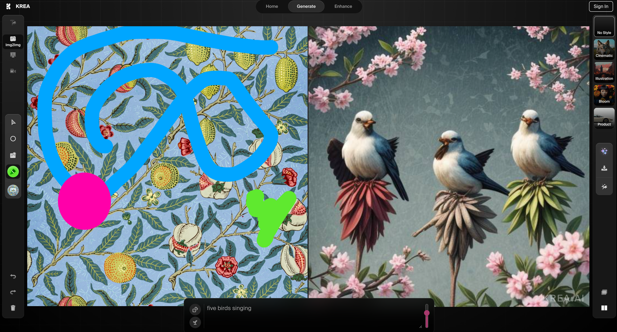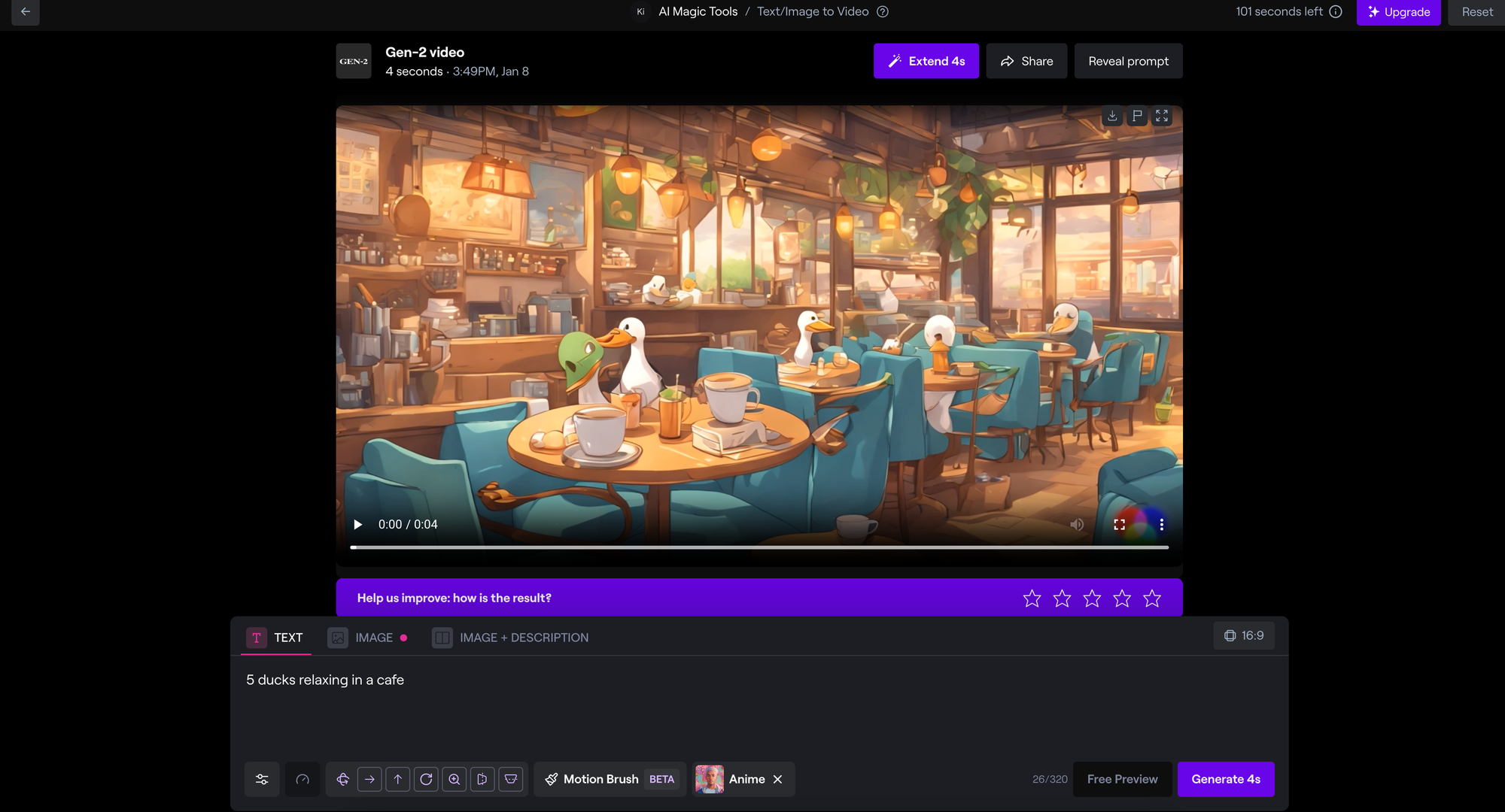 Since we got very used to ChatGPT's conversational flow, it's almost a given that we are expecting immediate results when generating with AI – speed is becoming more and more of an important factor. I was particularly impressed by the fastness of these two tools: KREA interprets your mixed-media visuals in real-time, generating a new version with each edit you do. Or, maybe you want to have your own Hollywood moment? Hop into Runway and generate a movie trailer in seconds with their highly customizable prompting system.